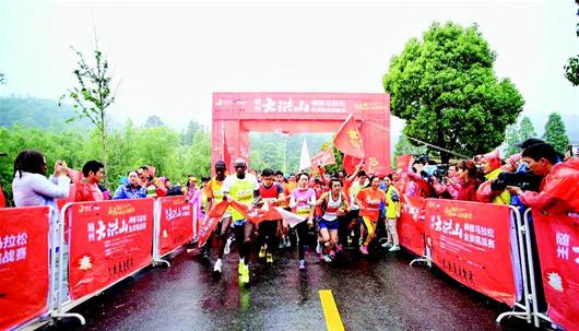 ? ? 5月8日,湖北首屆鄉(xiāng)村馬拉松賽暨大洪山禪修馬拉松賽在大洪山風景名勝區(qū)舉行。據(jù)悉,這也是世界首次舉辦禪修馬拉松賽。賽事吸引了近千名選手參加,其中有3名專程前來體驗禪修山地馬拉松的肯尼亞籍選手。