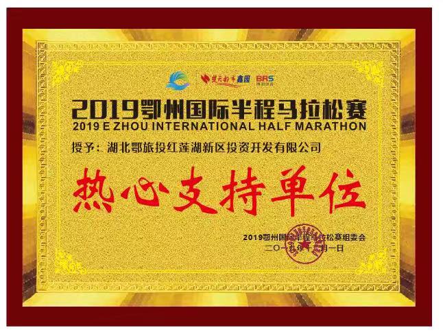 受鄂州市政府邀請(qǐng),鄂旅投紅蓮湖公司組織人員參與支持此次2019鄂州國(guó)際半程馬拉松賽,并被授予“熱心支持單位”。