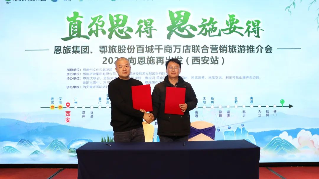 恩旅集團(tuán)旗下景區(qū)、襄陽古隆中、恩施騰龍洞、地心谷、梭布埡、鹿院坪景區(qū)面向陜西的旅游企業(yè)及媒體進(jìn)行生動(dòng)推介,同時(shí),恩旅集團(tuán)還與陜西旅行商企業(yè)代表簽署了戰(zhàn)略合作協(xié)議,共同推動(dòng)文旅產(chǎn)業(yè)的高質(zhì)量發(fā)展。