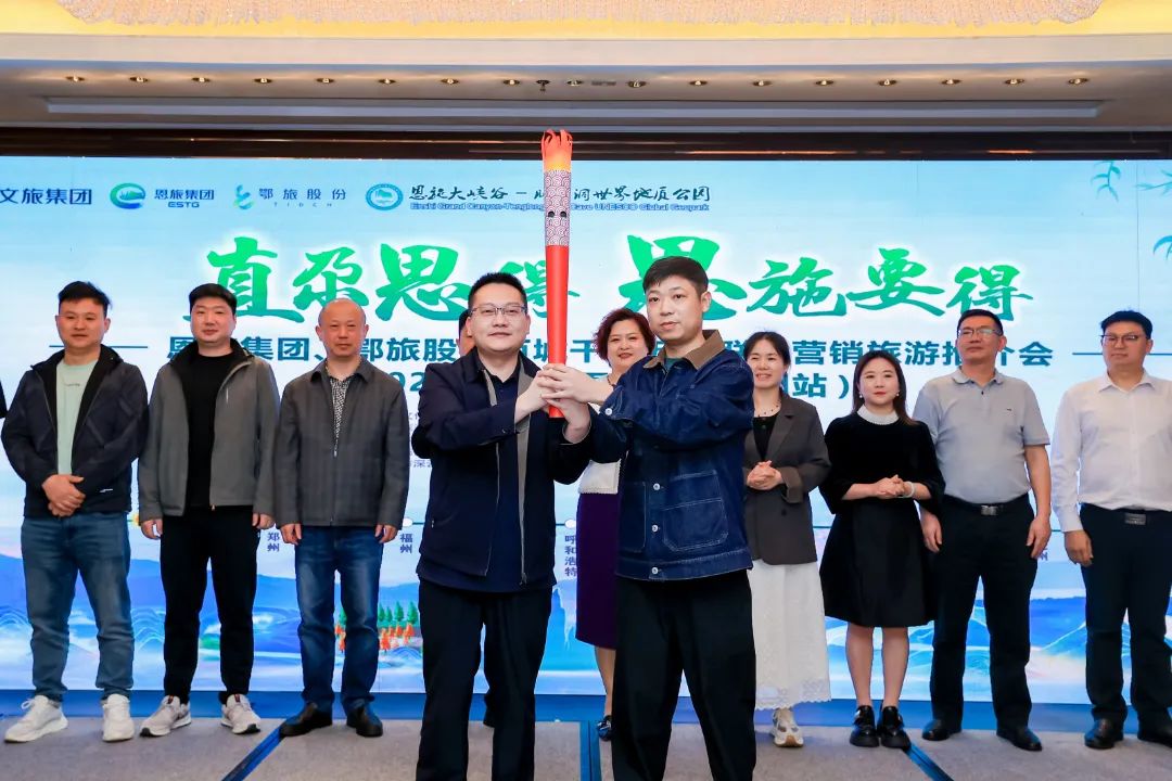 在深圳的活動(dòng)現(xiàn)場(chǎng),恩旅集團(tuán)與深圳兩地旅旅行社代表簽訂了戰(zhàn)略合作協(xié)議,并向旅行社代表傳遞火炬,宣布“直尕思得恩施要得 2025向恩施再出發(fā)”正式啟動(dòng)。
