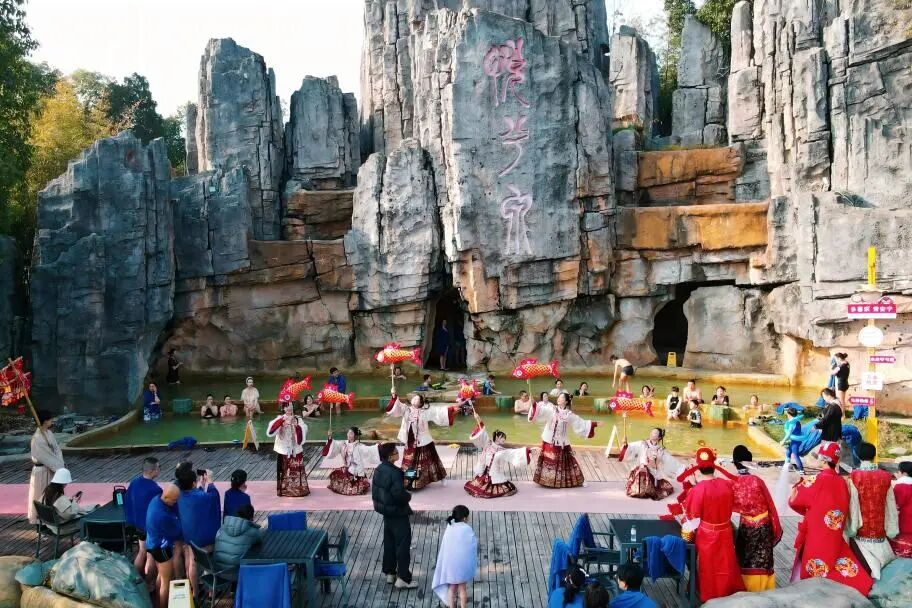 非遺民俗“潮”起來,傳統(tǒng)年味煥新生。洪旅集團(tuán)景區(qū)緊扣國潮熱點(diǎn),將非遺文化玩出新花樣。悅兮半島推出的魚燈巡游、古裝演繹等非遺展演,讓游客沉浸式感受流動(dòng)的民俗盛景;“財(cái)神賀歲”派發(fā)福袋、篝火晚會上共享熱藕湯,讓溫情與驚喜在園區(qū)彌漫。金灣酒店則打造了馬年潮玩會,砸金蛋、紅包墻趣味橫生;濕地生態(tài)園內(nèi),“歡樂套鴨”“蒙眼捉雞”等田園游戲,更是讓親子家庭樂享鄉(xiāng)野童趣,歡笑聲不絕于耳。
