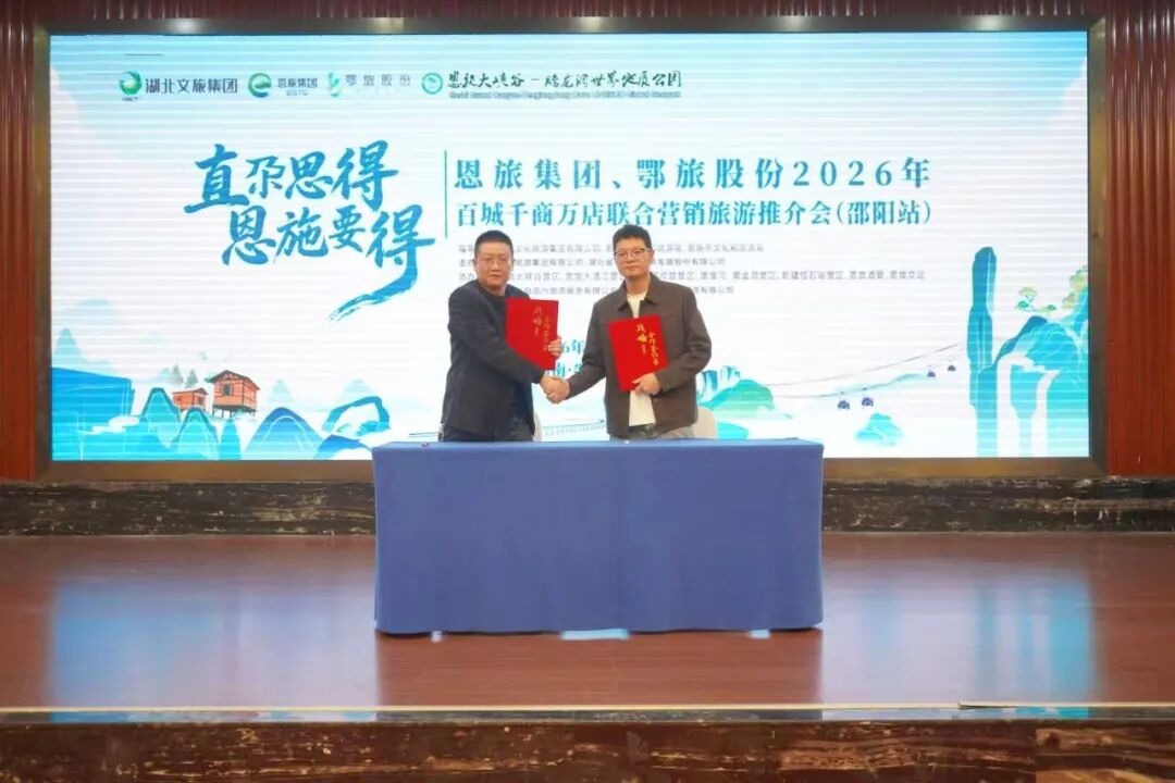 4月1日,恩旅集團(tuán)、鄂旅股份“直尕思得 恩施要得”主題旅游推介會在湖南邵陽隆重舉行。邵陽市文旅部門、旅行社代表及媒體嘉賓齊聚一堂,共話文旅合作,共推恩施山水秘境。