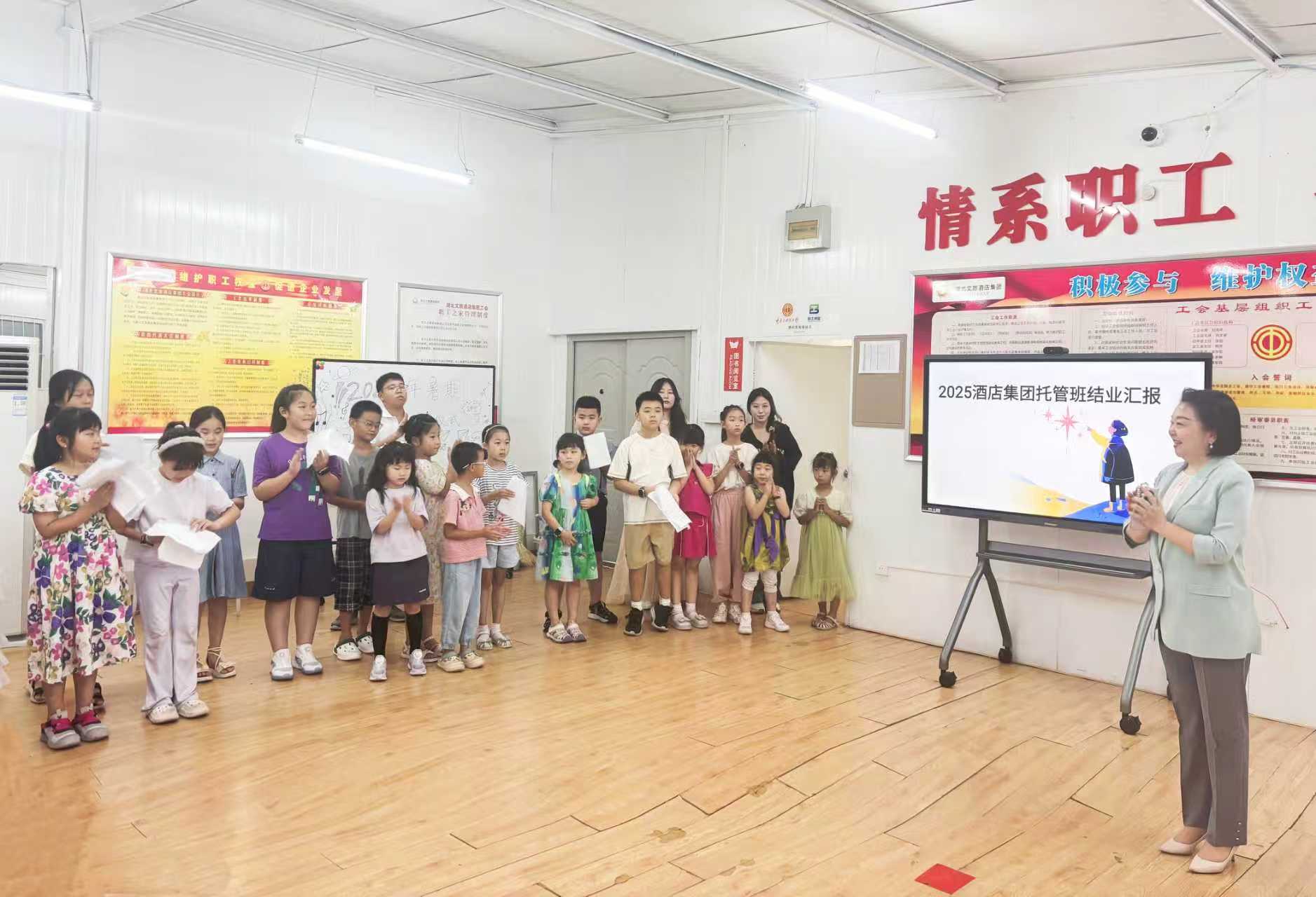 2025年暑期,酒店集團精心組織職工子女托管班,配備專業(yè)師資,為50余名職工子女提供安全、充實、有益的托管服務(wù)。課程設(shè)置涵蓋學(xué)業(yè)輔導(dǎo)、文體藝術(shù)、英語口語等內(nèi)容,并融合紅色研學(xué)、非遺體驗、手工烘焙等特色活動,讓孩子們在學(xué)與樂中度過暑期,有效解決了職工子女“看管難”問題,獲得廣泛好評。