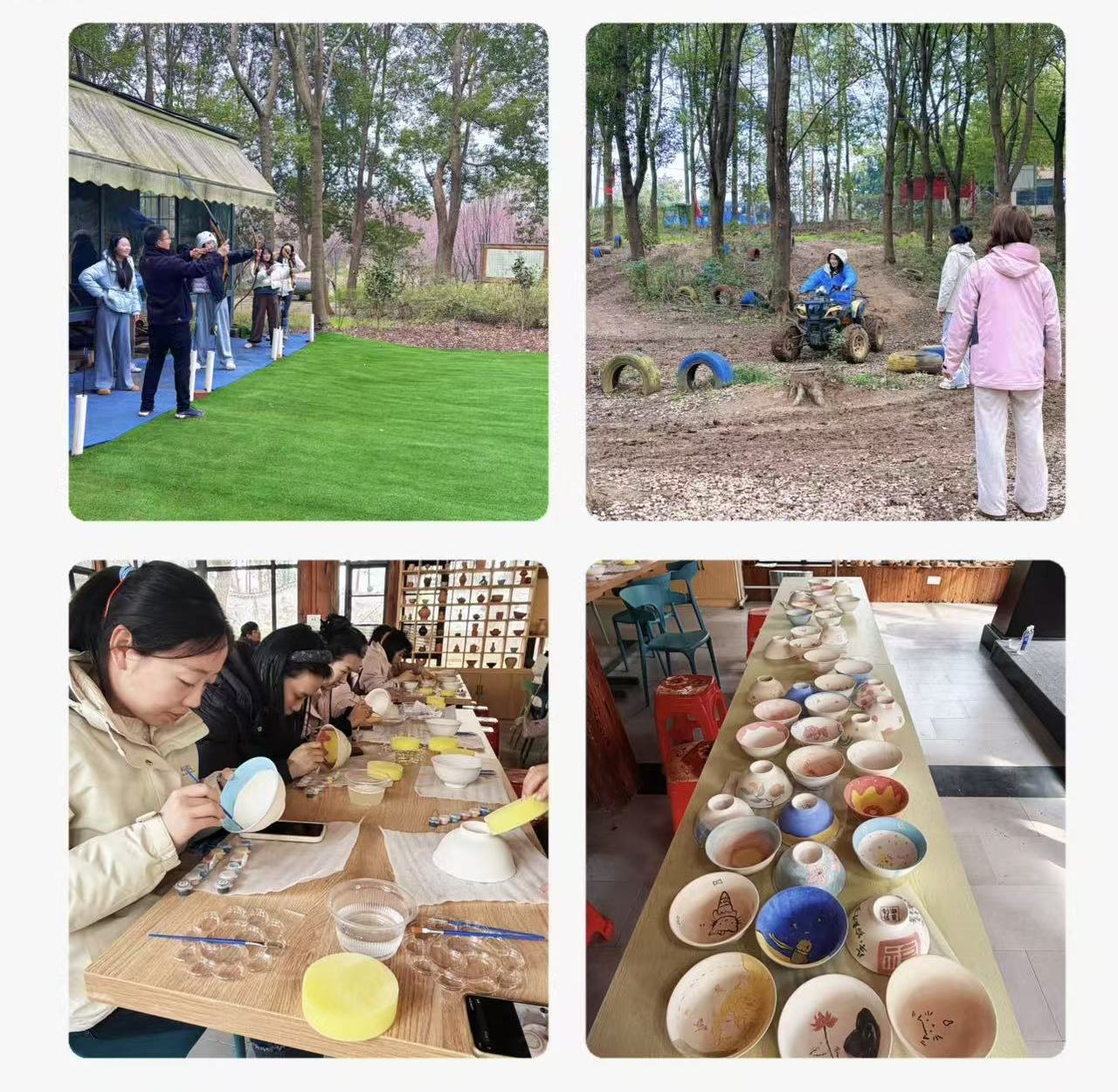 現(xiàn)場氛圍輕松愉悅,女職工們以瓷盤為紙,以釉彩為墨,用心填充色彩,制作出一個個獨具匠心的手繪作品。手繪創(chuàng)作結(jié)束后,大家騎行越野摩托車穿梭在田野間,一邊欣賞沿途春色,一邊暢談工作生活。