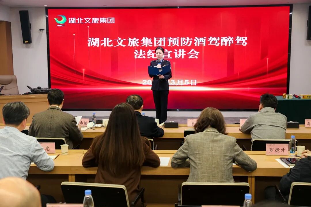 根據(jù)省紀委與省政府國資委黨委統(tǒng)一部署,3月5日,湖北文旅集團召開預(yù)防酒駕醉駕法紀宣講會。省公安廳交通管理局直屬高警一支隊三級警長周歡專題授課,省公安廳交通管理局宣教部門三級警長龔菲菲作預(yù)防酒駕醉駕安全倡議。