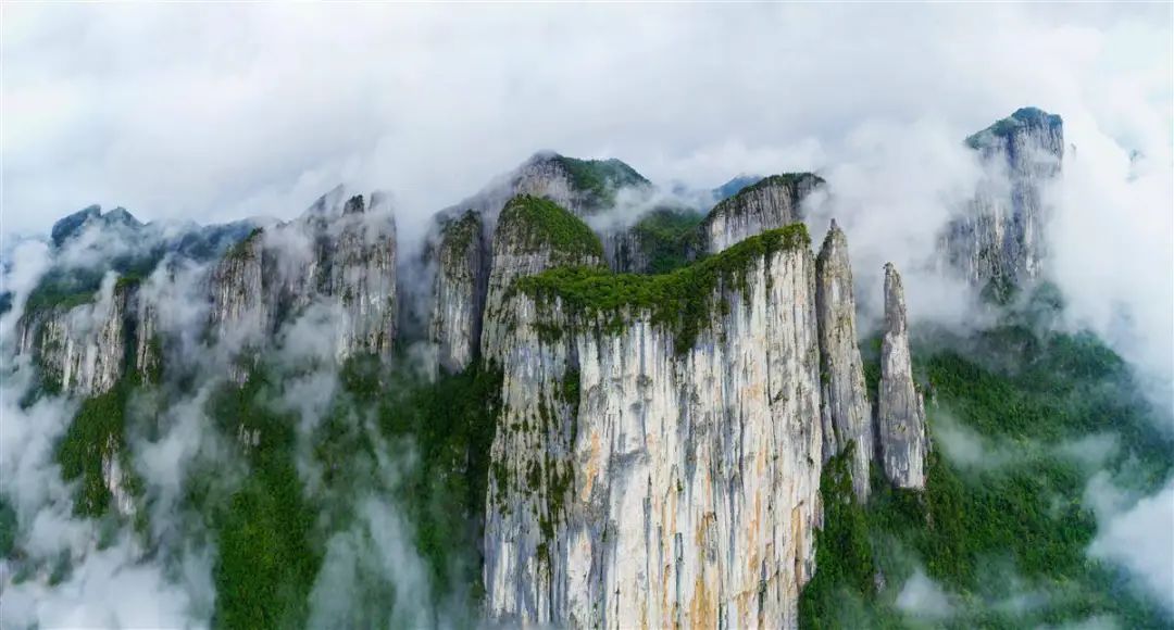 乘坐景區(qū)直升機(jī)俯瞰,恩施大峽谷石柱林全貌盡收眼底。在七星寨景點(diǎn),3平方公里范圍內(nèi)有62座石灰?guī)r石峰石柱,高度從20米到285米不等,它們拔地而起,密集分布,似叢林,全球罕見。