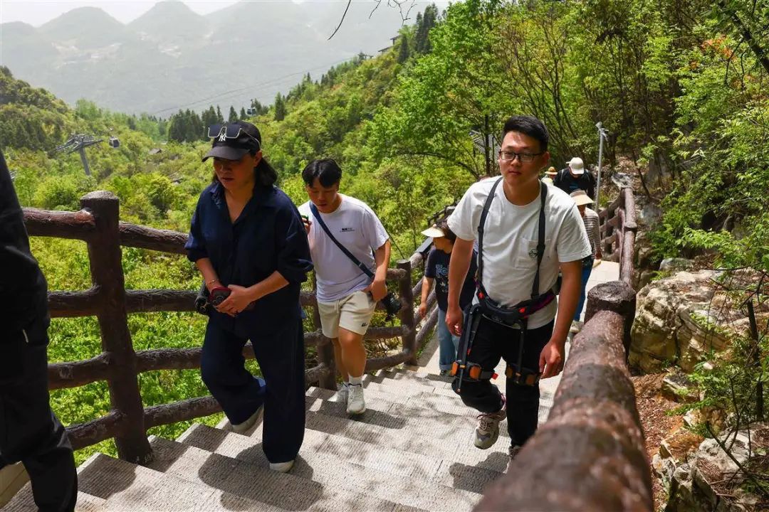 游客在恩施大峽谷景區(qū)穿戴外骨骼機(jī)器人登山。(湖北日報全媒記者 蔡俊 攝)