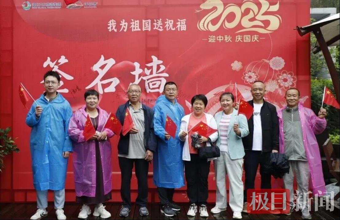 景區(qū)入口處,“我為祖國送祝?!焙灻麎η芭牌痖L隊,游客們欣然提筆,留下一句句真摯祝福,現場洋溢著熱烈而溫馨的節(jié)日氣息。