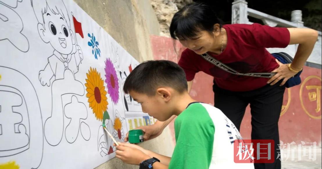 在唐崖河·黃金洞景區(qū),一場名為“山河共繪中國心”的集體彩繪活動在清風殿前成為焦點。活動現場鋪設了以“錦繡中華”為主題的長卷,設置了多個繪畫區(qū)域。游客們自發(fā)參與創(chuàng)作,或調色勾勒,或細心描繪,共同用畫筆在長卷上繪制五星紅旗、祥云、火箭等象征國家繁榮與發(fā)展的圖案。