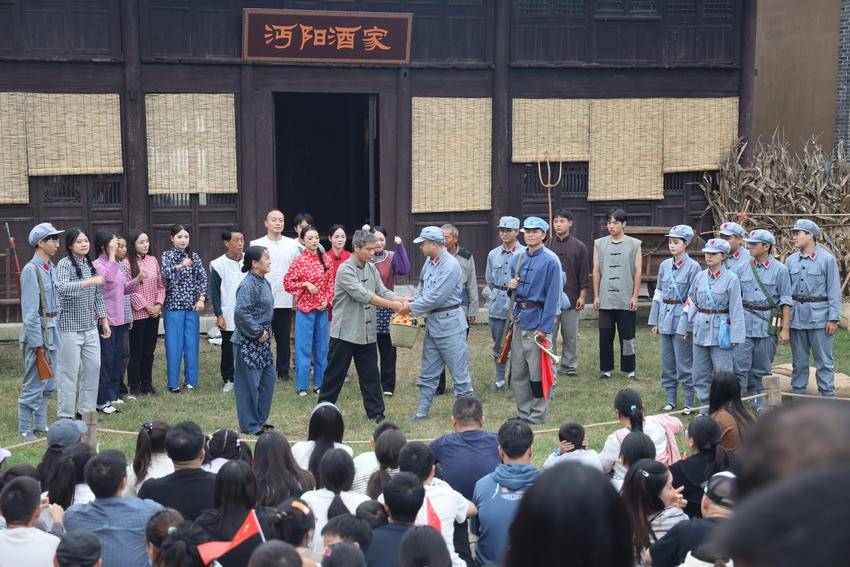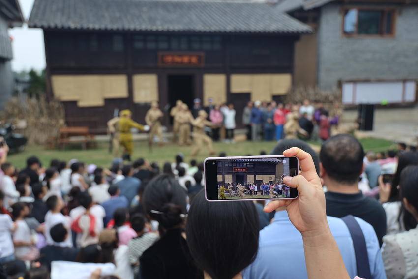 “在‘十一’國慶期間能夠到沔陽小鎮(zhèn)參加這樣的愛國主義節(jié)目,我深感榮幸,作為中國人我也感到非常驕傲!”參與演出的游客田克華激動地說。演出中,報名參演的游客在工作人員指導下,迅速進入角色。他們在逼真的硝煙與音效中,親身感受歷史的沉重與先輩的英勇。