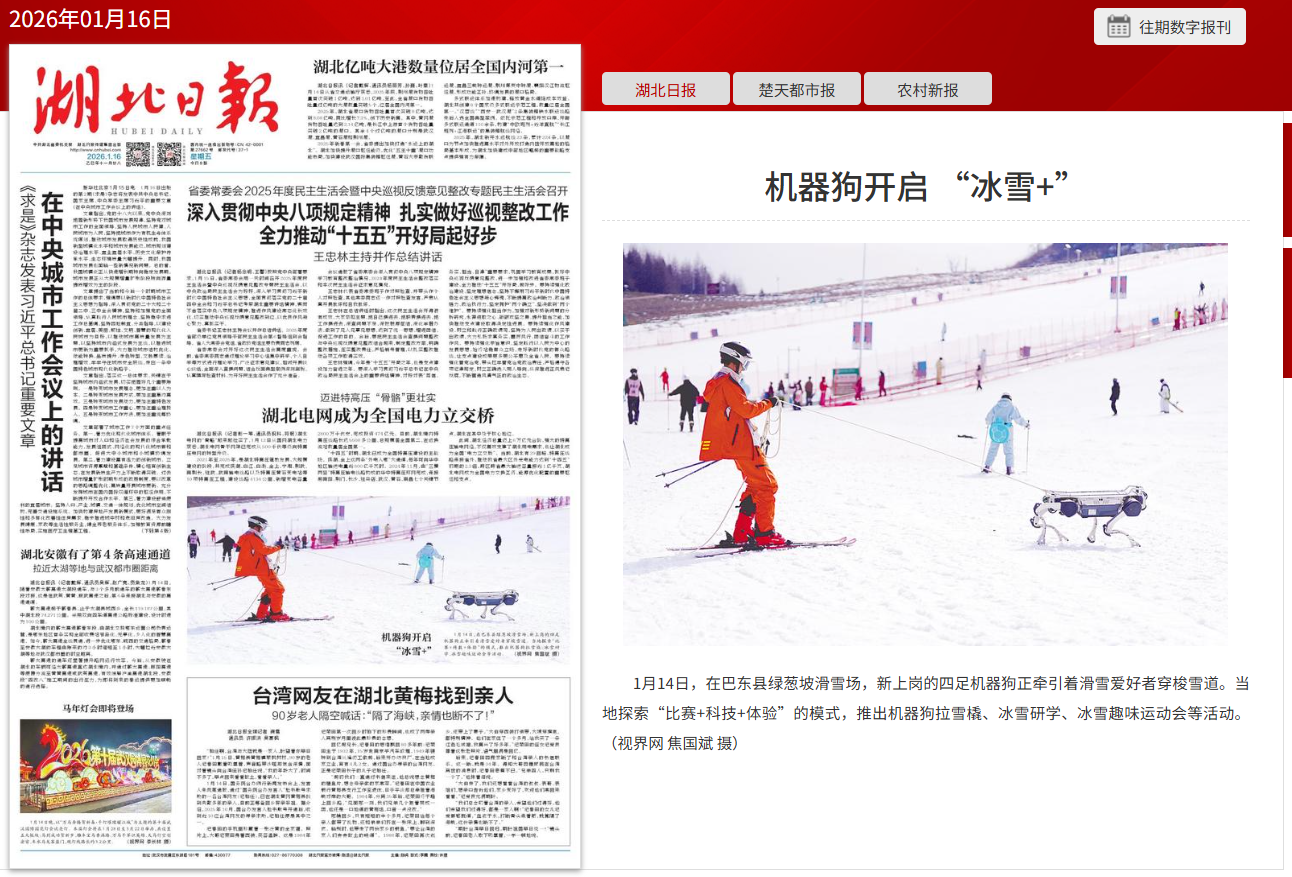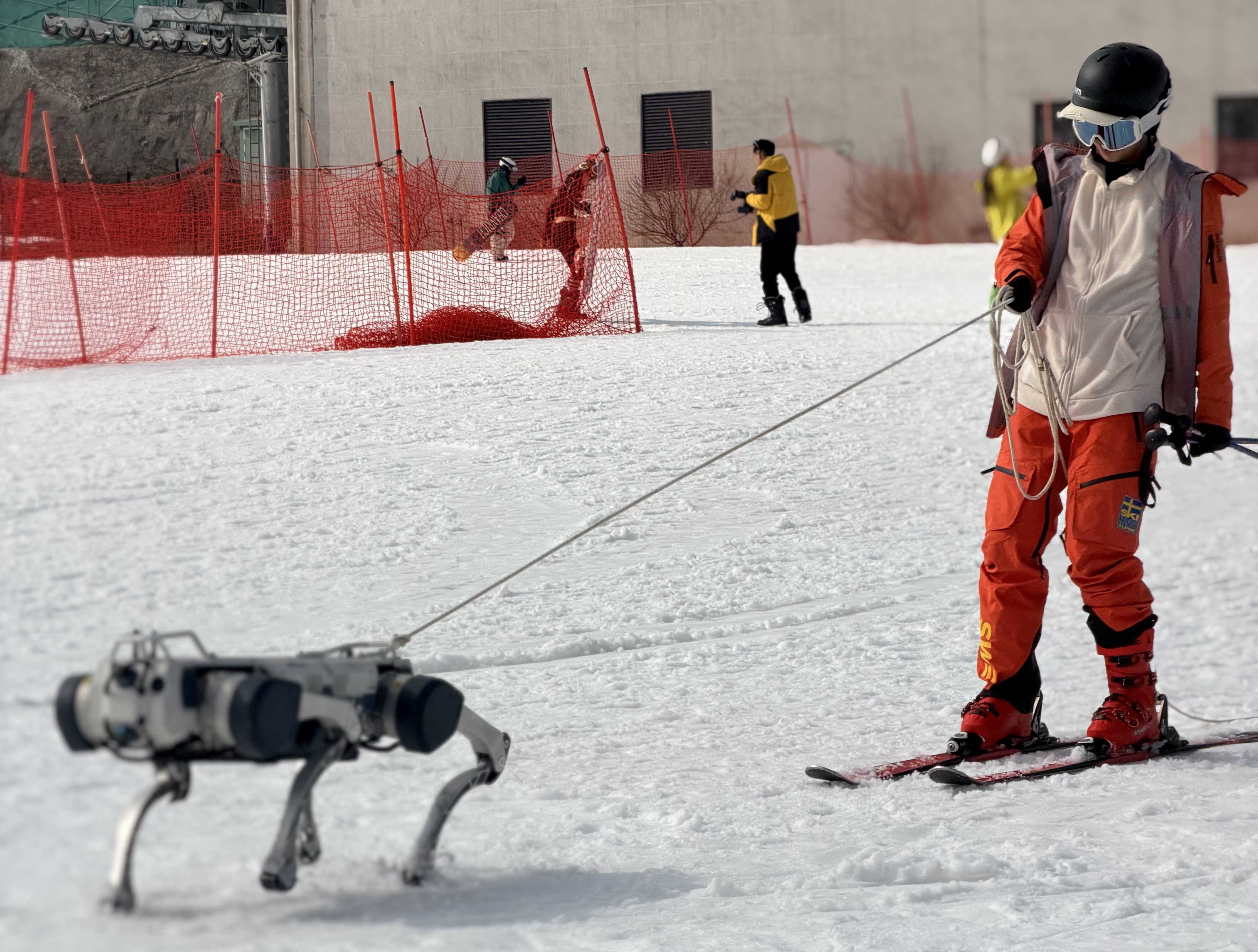 近日,鄂旅股份酷馳科技攜機(jī)器狗“天團(tuán)”到巴東縣綠蔥坡滑雪場試用“上崗”,這群可愛的智能設(shè)備,在雪道上靈活牽引滑雪愛好者穿梭、為游客運(yùn)送雪板、和游客招手互動,成為冰雪世界中一道獨(dú)特的科技風(fēng)景線,吸引游客紛紛駐足互動合影,并受到央視媒體和湖北日報的報道關(guān)注。