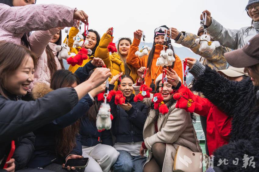 大年初一的游船上,恩施大清江景區(qū)的工作人員在船艙內(nèi)為游客送上紅色小馬掛件,并致以“新年快樂,馬年大吉”的祝福。小巧的掛件以紅繩系著金色“福”字,成為游客手中寓意吉祥的新春伴手禮。