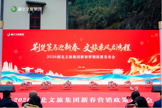 12月24日,“荊楚策馬迎新春 文旅乘風啟鴻程”2026湖北文旅集團新春營銷政策發(fā)布會在宜昌隆重舉行。鄂旅股份酷馳科技的機器狗天團驚艷亮相,以靈動創(chuàng)意點亮現(xiàn)場氛圍。