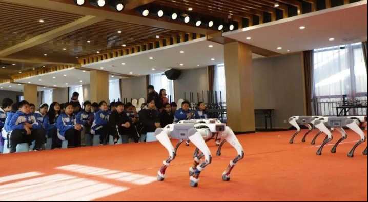 酷馳科技帶來(lái)了靈動(dòng)可愛的AI智能機(jī)器狗團(tuán)隊(duì)作為特邀“科技嘉賓”。活動(dòng)現(xiàn)場(chǎng),工作人員與景區(qū)研學(xué)導(dǎo)師的聯(lián)合指導(dǎo)下,機(jī)器狗流暢完成奔跑、跳躍、翻滾、智能避障等高難度動(dòng)作,瞬間點(diǎn)燃學(xué)生們的熱情,現(xiàn)場(chǎng)掌聲與驚嘆聲此起彼伏。