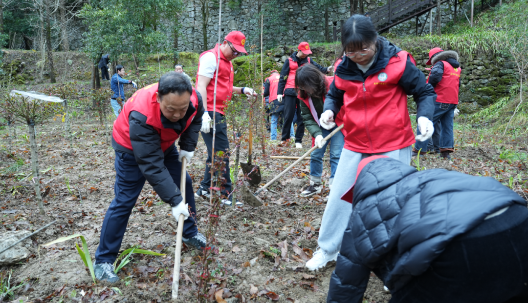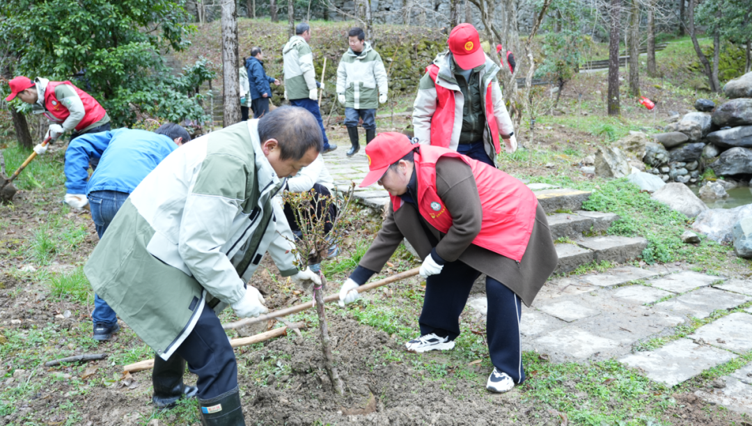 3月16日上午8:30,神農(nóng)壇景區(qū)薄霧未散。來自本部各部門40余名志愿者乘坐大巴來到神農(nóng)壇景區(qū),他們和景區(qū)28名志愿者一起,在本部黨支部書記張文同志的組織下,身著紅馬甲、戴上白手套,扛起鐵鍬、鋤頭,提著月季樹苗,精神抖擻地走進(jìn)節(jié)氣園種植區(qū)。