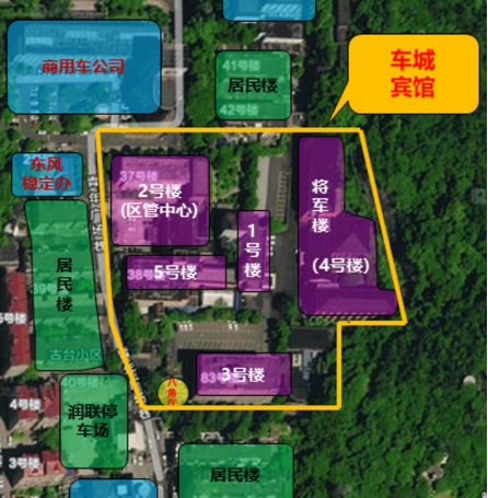 (2號(hào)樓現(xiàn)為東風(fēng)汽車區(qū)管中心辦公樓,不在本次車城賓館煥新升級(jí)項(xiàng)目建設(shè)范圍之內(nèi)。)
