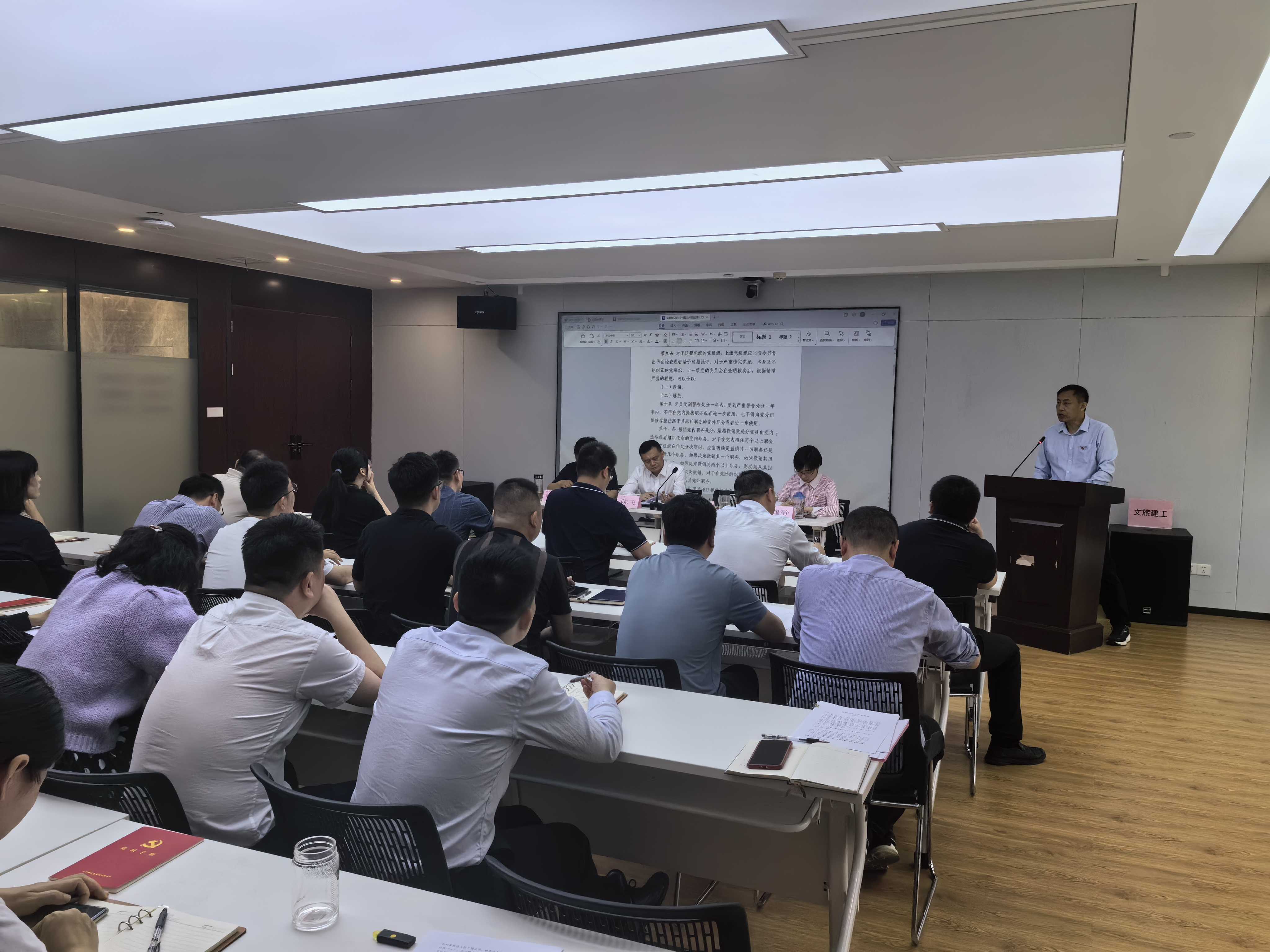 文旅建工黨紀(jì)學(xué)習(xí)教育專題學(xué)習(xí)于4月26日上午舉行。黨總支書記陳飛強(qiáng)調(diào),要深入學(xué)習(xí)貫徹習(xí)近平總書記關(guān)于黨紀(jì)學(xué)習(xí)教育的重要講話指示精神,在深化認(rèn)識(shí)、學(xué)懂弄通、貫徹執(zhí)行《中國(guó)共產(chǎn)黨紀(jì)律處分條例》上下更大功夫,以黨紀(jì)學(xué)習(xí)教育的高質(zhì)量開展,切實(shí)增強(qiáng)紀(jì)律修養(yǎng),錘煉堅(jiān)強(qiáng)黨性,推動(dòng)干事創(chuàng)業(yè)。
