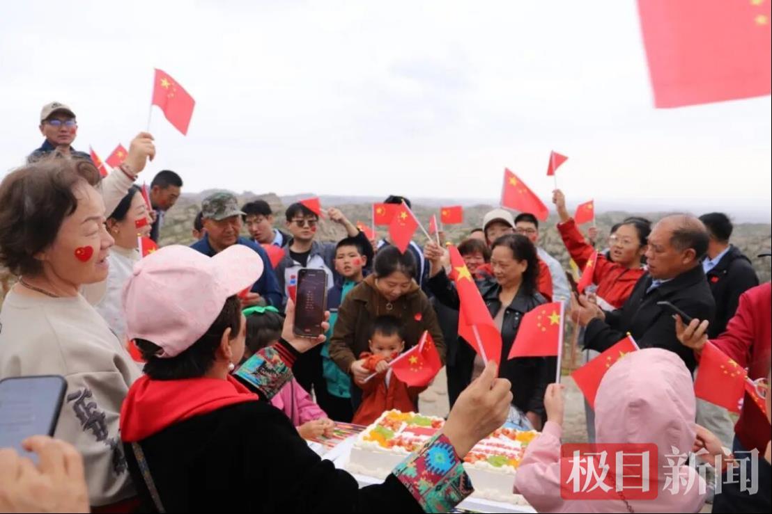 位于祖國西北邊陲的新疆怪石峪景區(qū),則以一場富有意義的登山活動為祖國慶生?!拔以谧鎳钗鞅睘樽鎳鴳c生”登山活動吸引了眾多游客參與。隊伍從塔斯廣場出發(fā),沿著景觀步道向山頂進(jìn)發(fā)。成功抵達(dá)北苑觀景臺后,游客們面對壯麗山川,齊聲高唱《歌唱祖國》,并分享了特制的節(jié)日蛋糕,“祖國萬歲”的真誠吶喊在山谷間激蕩回響。登山途中,景區(qū)精心設(shè)置的多個“與國旗同框”打卡點也深受游客喜愛,人們紛紛在此駐足,留下與國旗同框的珍貴合影。