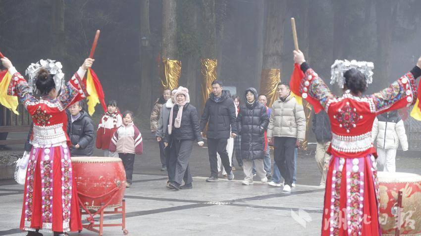 咸豐坪壩營景區(qū)以“駿馬踏春啟新程 非遺鬧春醉林?!睘橹黝},推出非遺迎賓、年俗體驗、林海祈福系列活動,景區(qū)入口鼓陣如虹、迎客歌嘹亮,游客沉浸式參與搗糍粑、學(xué)做土家豆皮、剪駿馬窗花等非遺項目,更有詩詞免票互動讓生態(tài)之美與文化之雅相融,現(xiàn)場游人如織、喜氣盈盈。