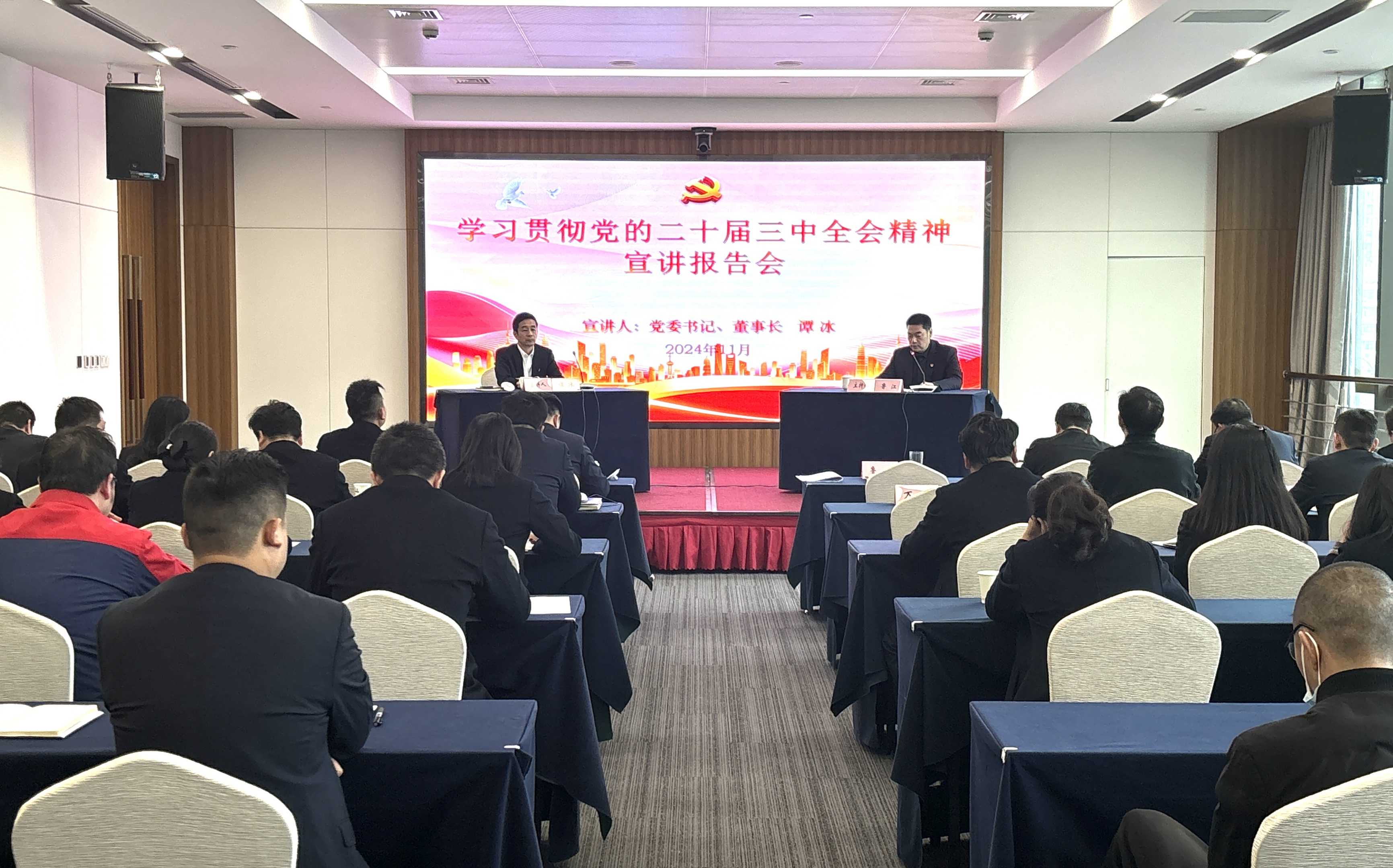 11月26日,湖北飯店開展學習貫徹黨的二十屆三中全會精神宣講。飯店飯店黨委宣講隊隊長、黨委書記、董事長譚冰作宣講報告,黨委副書記、總經(jīng)理魯江主持會議。