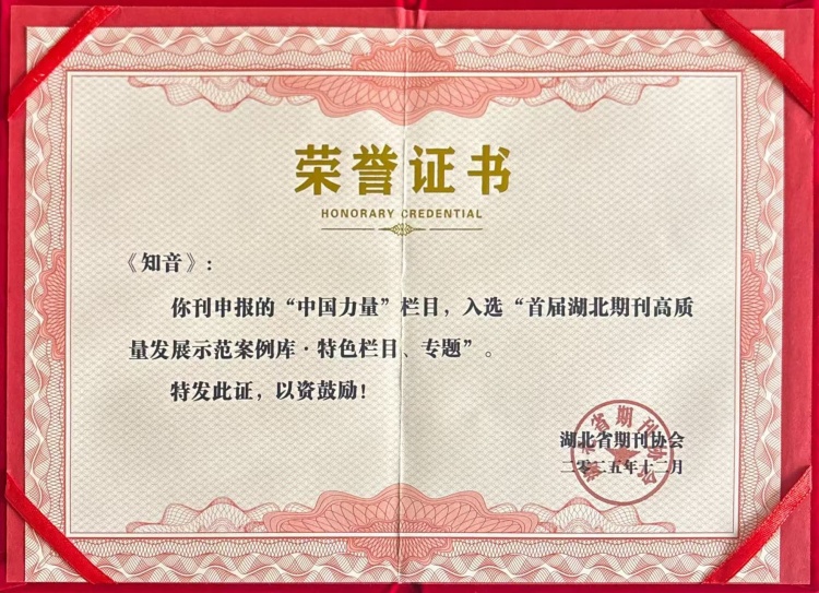會上公布了首屆湖北期刊高質(zhì)量發(fā)展示范案例庫入庫項目,并為入庫期刊和個人頒發(fā)證書?!吨簟冯s志“中國力量”欄目憑借其獨特的選題視角和卓越的內(nèi)容質(zhì)量,成功入選“首屆湖北期刊高質(zhì)量發(fā)展示范案例庫·特色欄目、專題”。